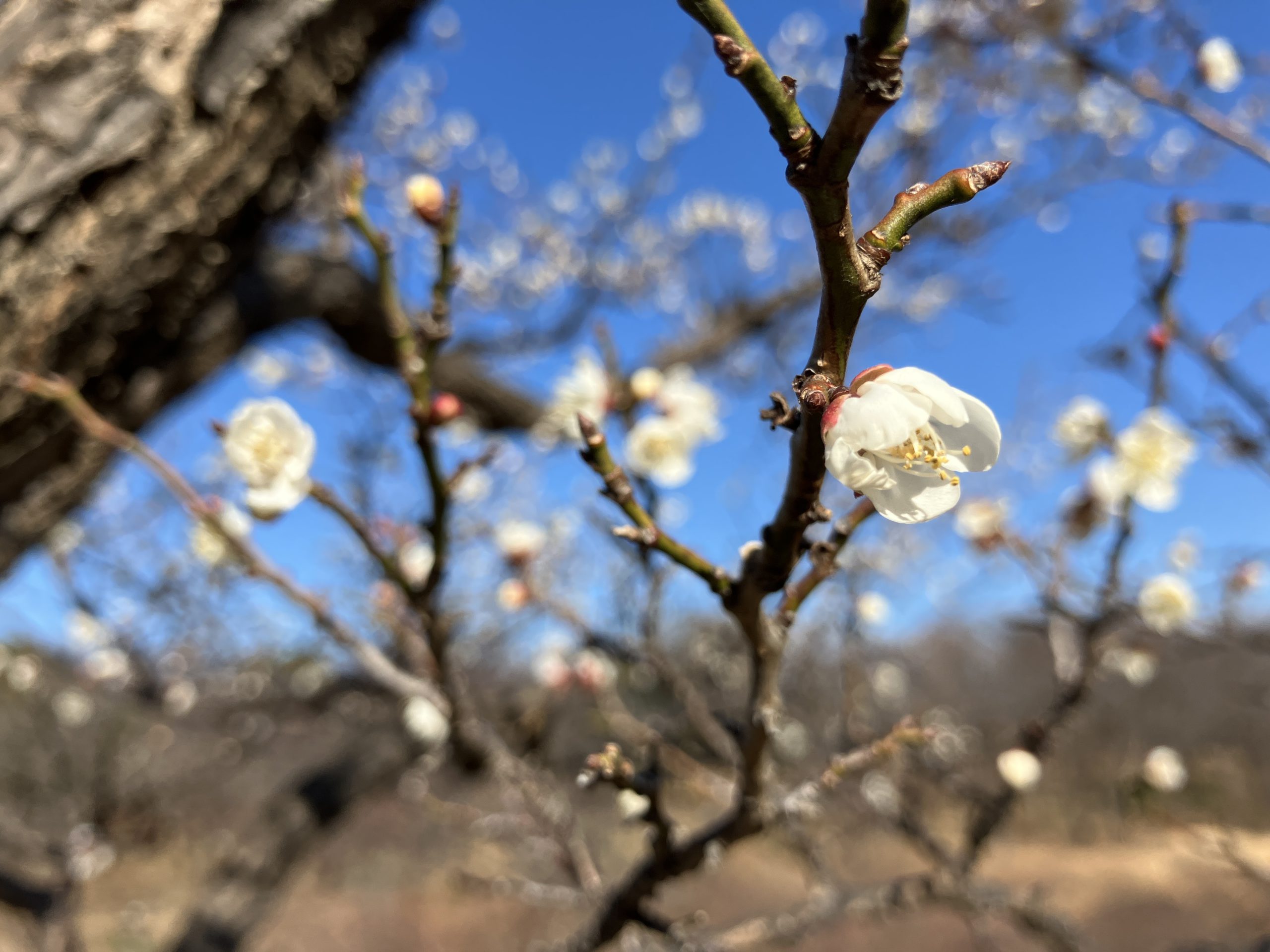 さて今年の暖冬の影響なのか、森林公園の梅林も早くも花が咲き始めています。
