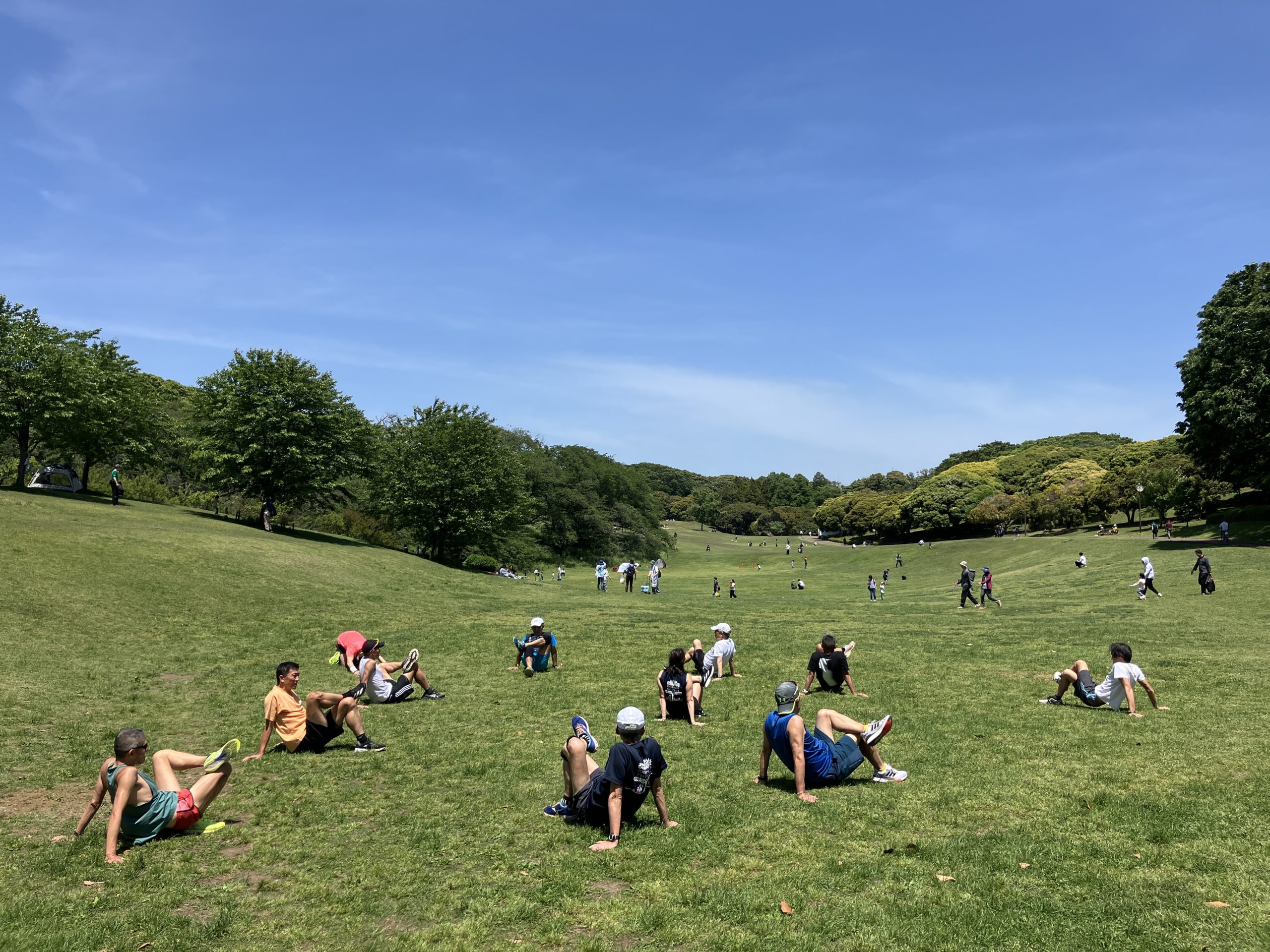 晴天の森林公園にいつもの20名ほどのメンバーが集まりました。