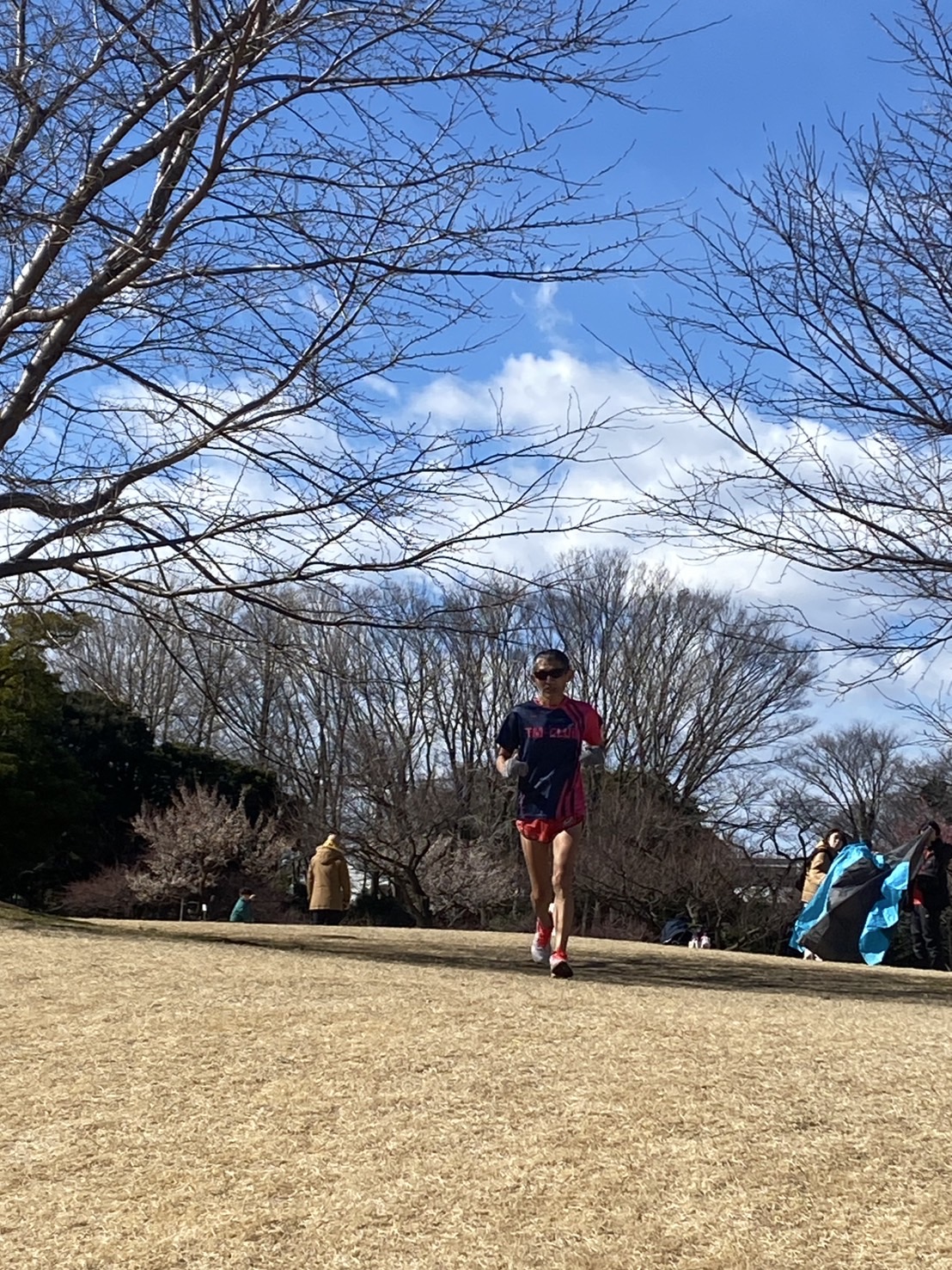 2キロコースを使った時間走ですが、2キロコースのアップダウンがペースを狂わせていくため、とってもいい練習になります。