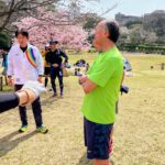 練習は、加藤さんの爆速動的ストレッチの後、園外走へ。現役組は根岸森林公園→本牧山頂公園→ワシン坂→港の見える丘公園→根岸森林公園の周回コースをゆったりと走りました。