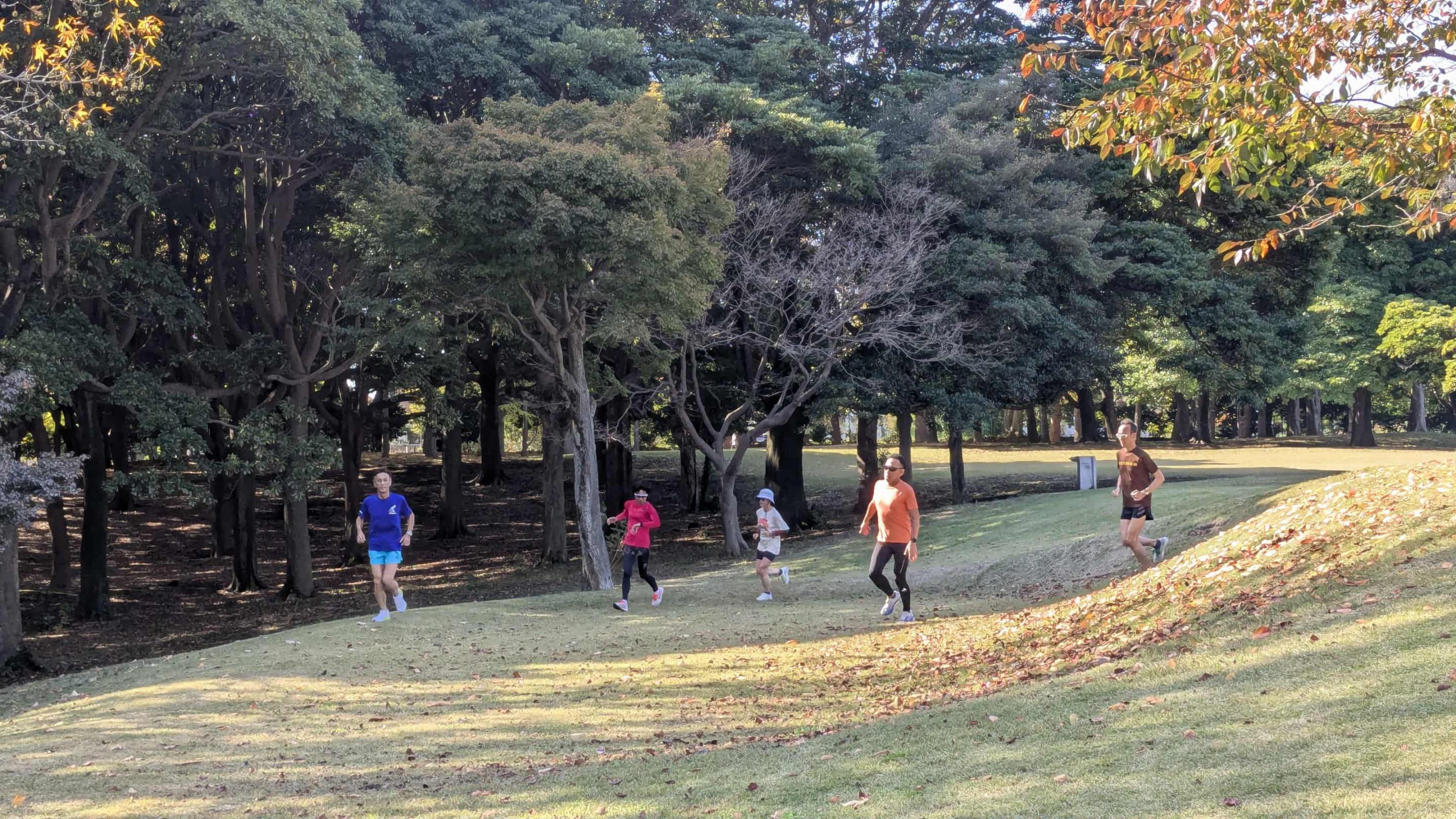 落葉がめちゃくちゃ綺麗な根岸森林公園に、21人が集まりました。やや肌寒い感じでしたが、とても走りやすい良い気候でした。