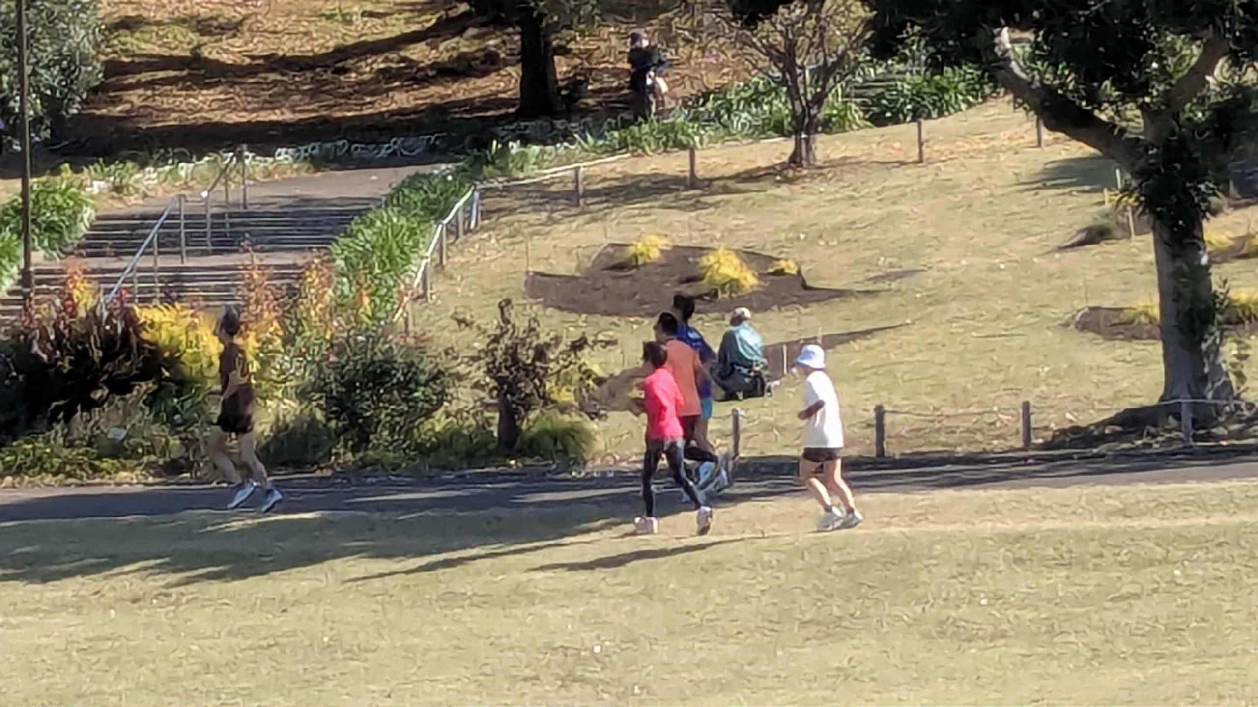 私は、麺さん工藤さん菊池さんに着いて行きましたが、上り坂で大きく遅れてしまうためショートカットして追いつき、何とか4周。全く一人になるとやめてしまいそうだったので、私にとってはいっぱいいっぱいのペースでいい練習をさせていただきました。その後は加賀さんがハマスタ方面から走って来てくれたので、お話しながら60分間しっかり走り切りました。皆さんマイペースで森林公園のアップダウンを楽しまれていました。大変お疲れさまでした。