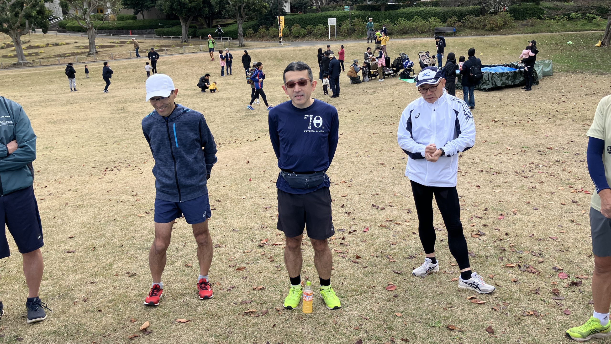 60分走は個人走ですが、自然に少人数のグループとなりました。白尾さんは平澤さんと一緒に軽快に楽しく5周半されたとのこと、つくばに出ていれば自己ベスト確実だったと思われます。例のガチ対決が先送りになり残念でしたね。。。