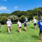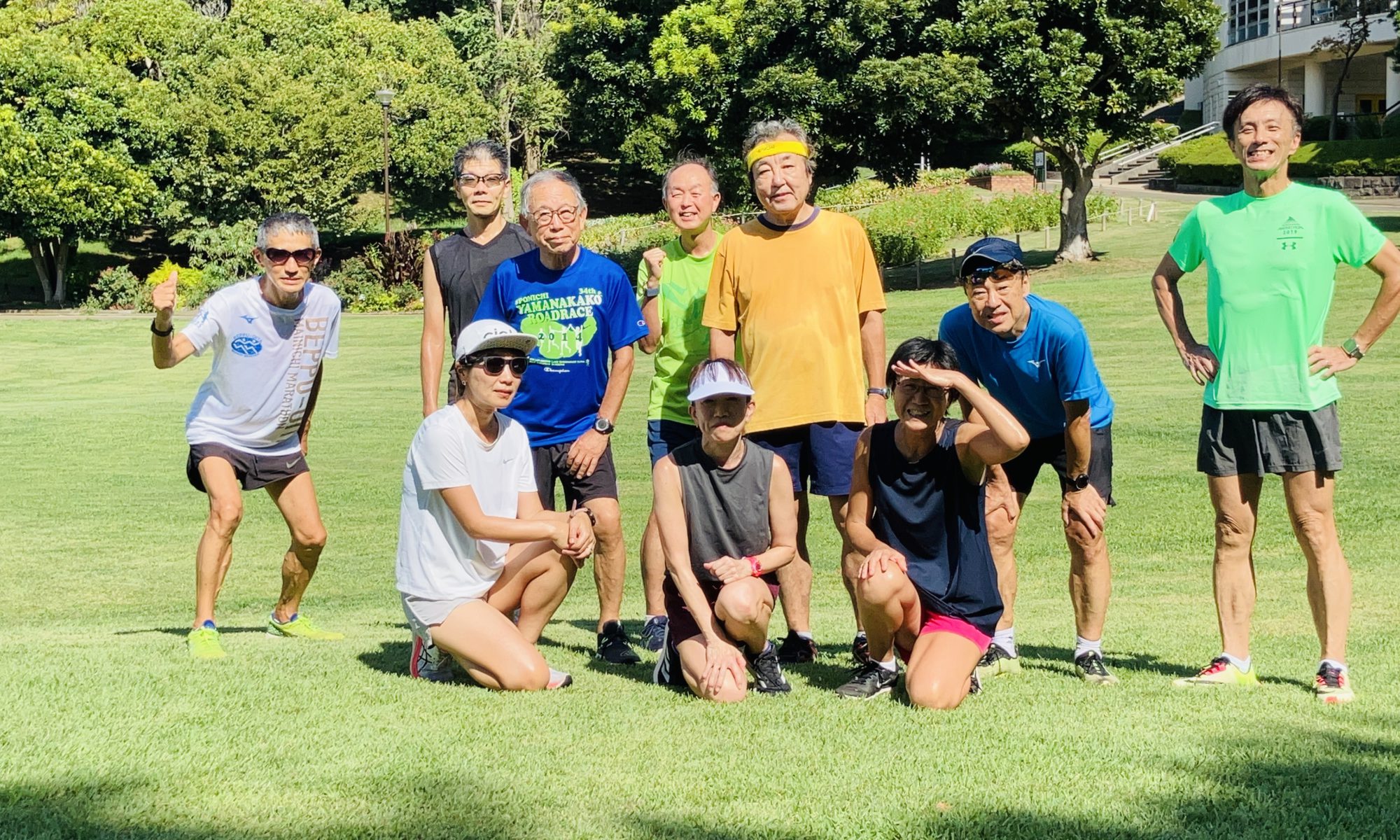 その後、園内を一周ぐるり日陰走をして加藤さんのアフターストレッチで終了しました。