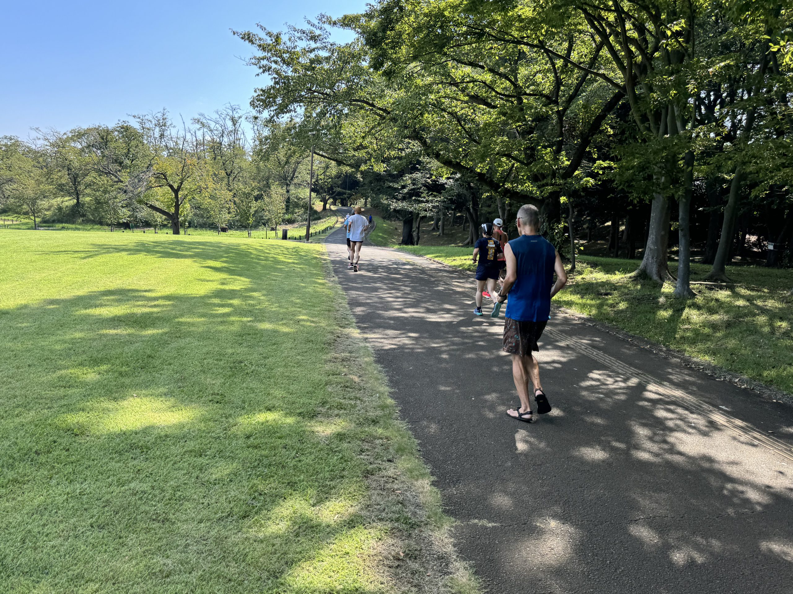 午前中から暑さがひどく、誰も来ないんじゃないか、とても森林公園にたどり着けないんじゃないか、と迷いつつ向かいましたが、行ってしまえばなんとか走れて、自分でも驚きました。絶対に一人では走れないので、皆さんに感謝です!