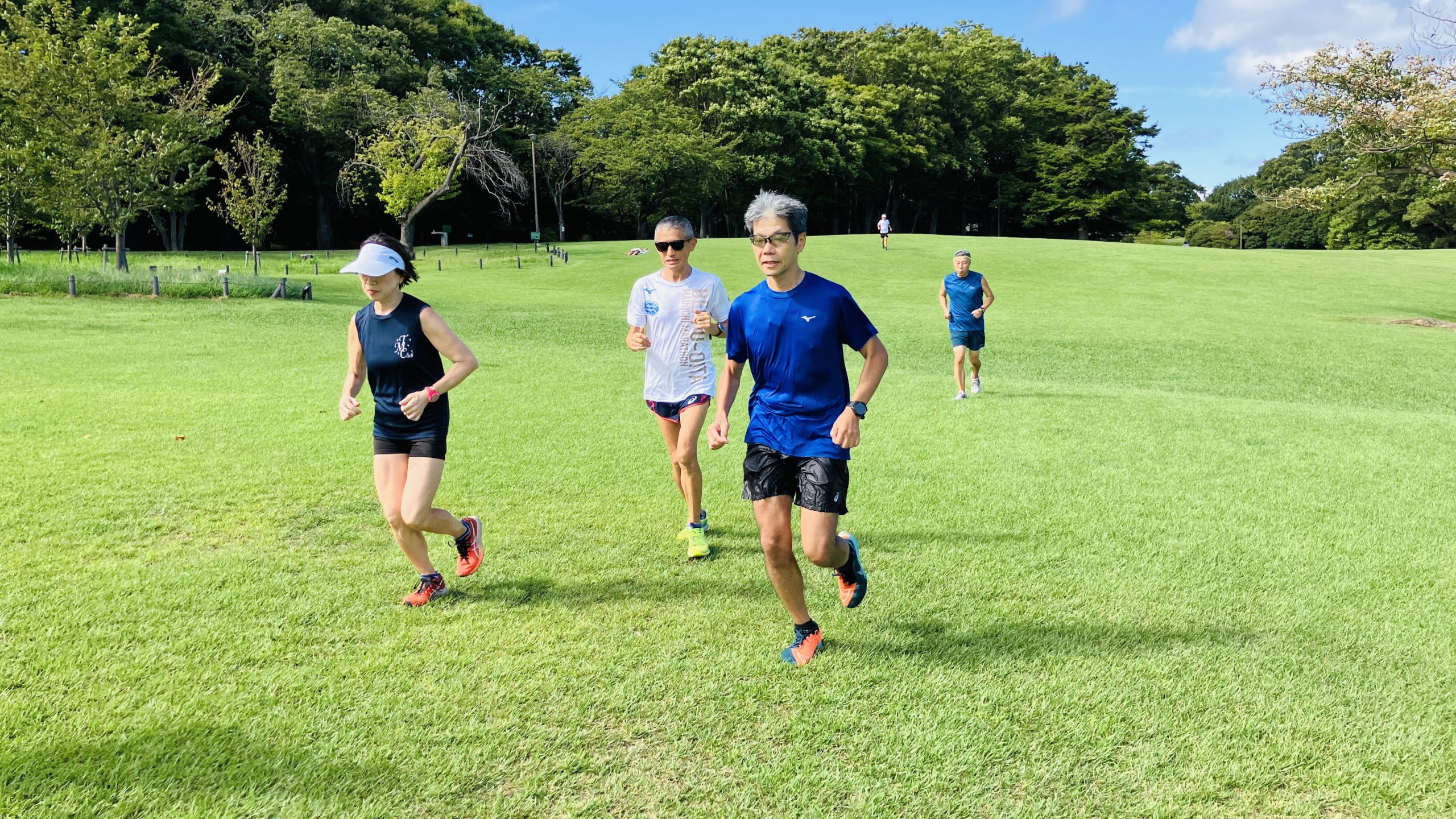 各リーダーのもと、森林公園の日陰のコースを活用して暑い中ですが良い練習が出来たと思います。