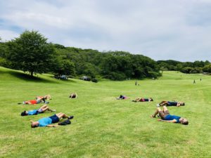 最後に芝の上で気持ちよくストレッチをして終了しました。
