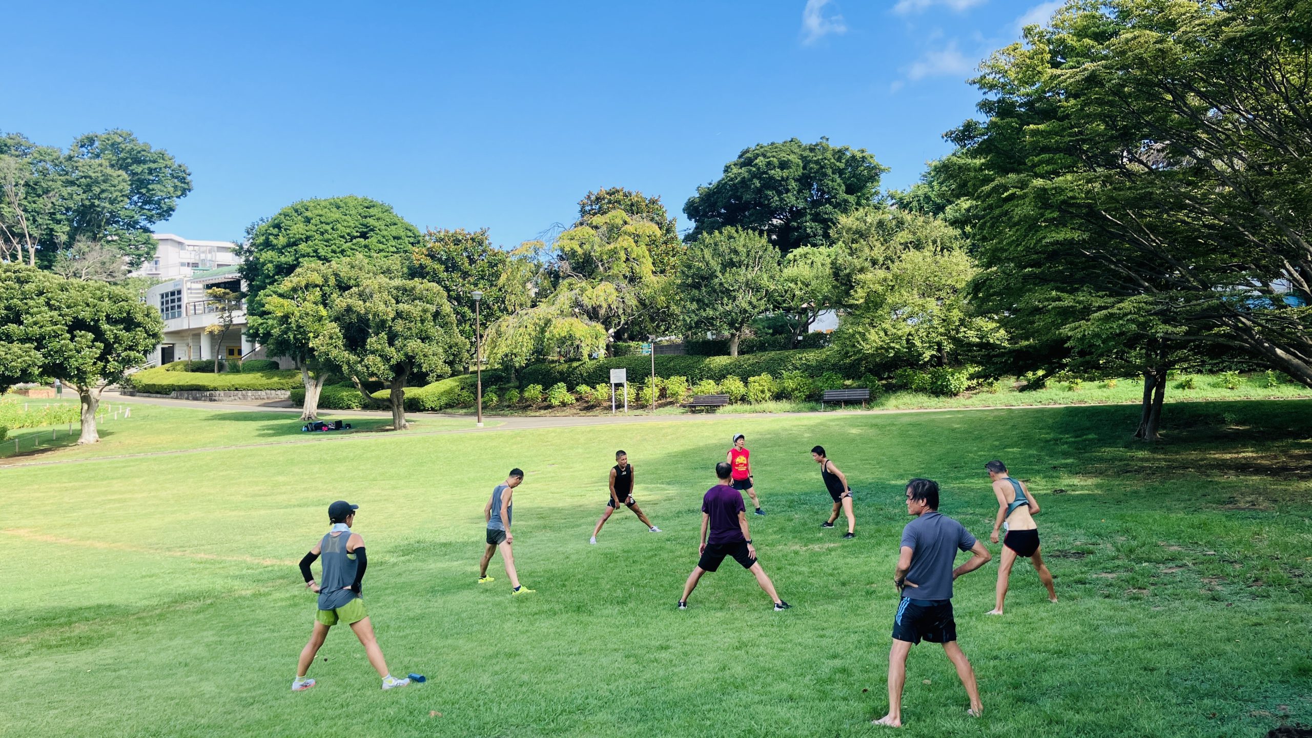 本練は、園内走、1000m×5本のインターバル走を実施しました。インターバル走は、暑さのため、半分以上木陰のロードを走るコースで、通常7本までのところ5本までとしました。1本毎に水をかぶり給水しながら、各自体調変化に注意し、無理なく本数を判断しました。直射日光が当たる部分はキツく早く日陰に入りたくて急いでしまいましたね。