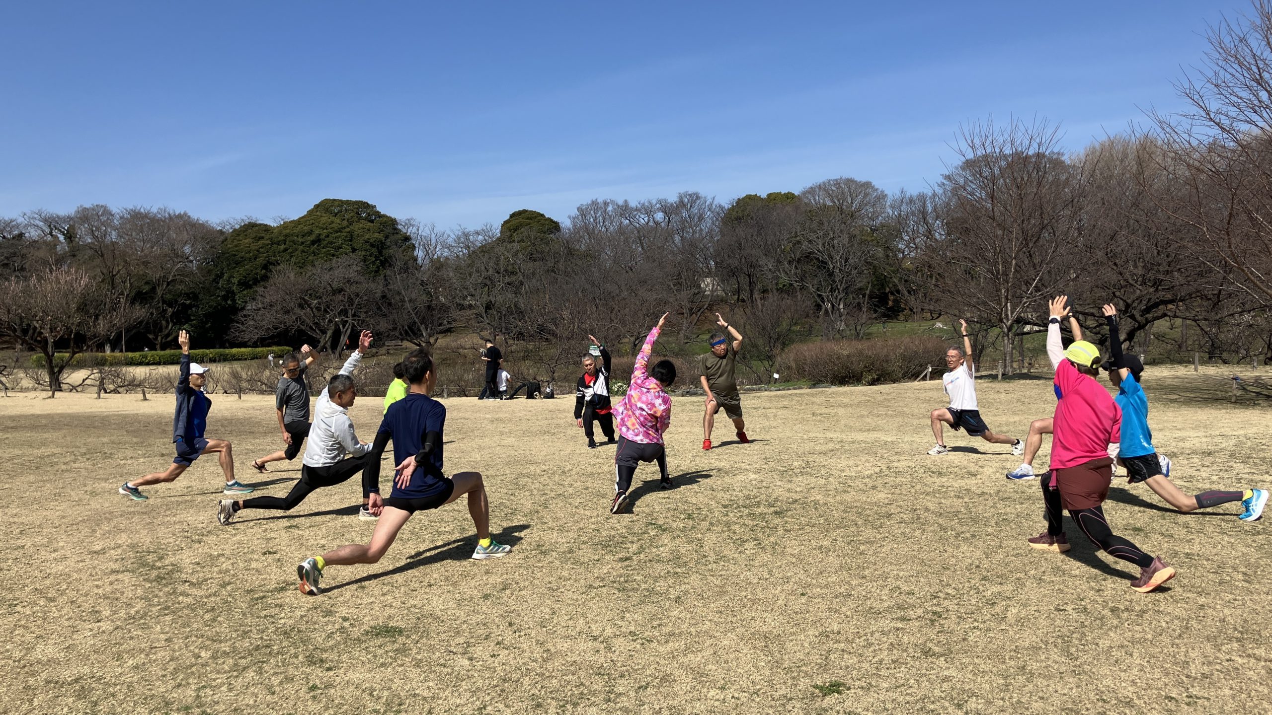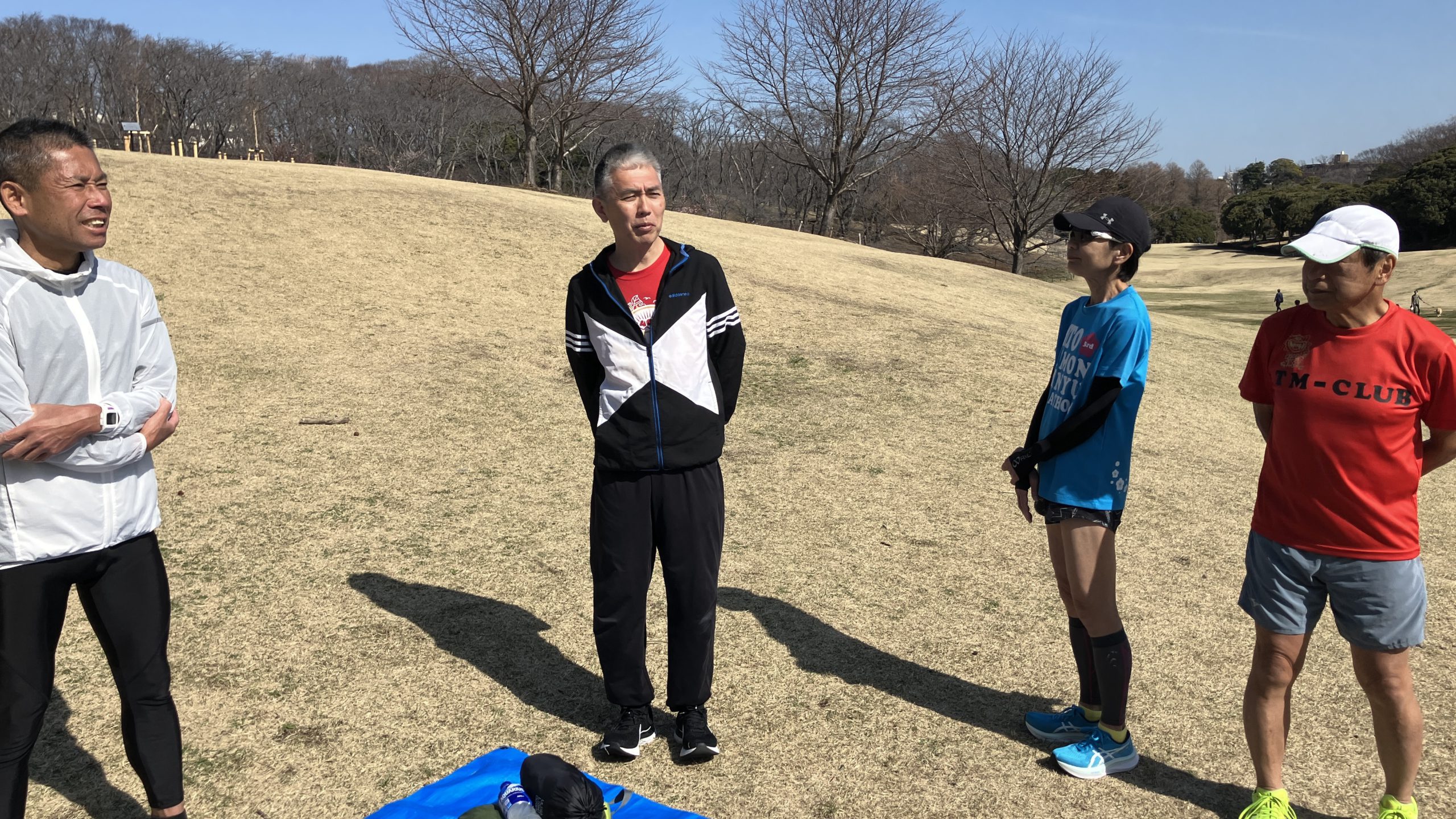 オープニングジョグでは富士山が見える丘(今回はあまり見えず)をまわり、辻さんのストレッチとドリルで体をほぐした後は、園内走とインターバルチームに分かれて本連スタートしました。