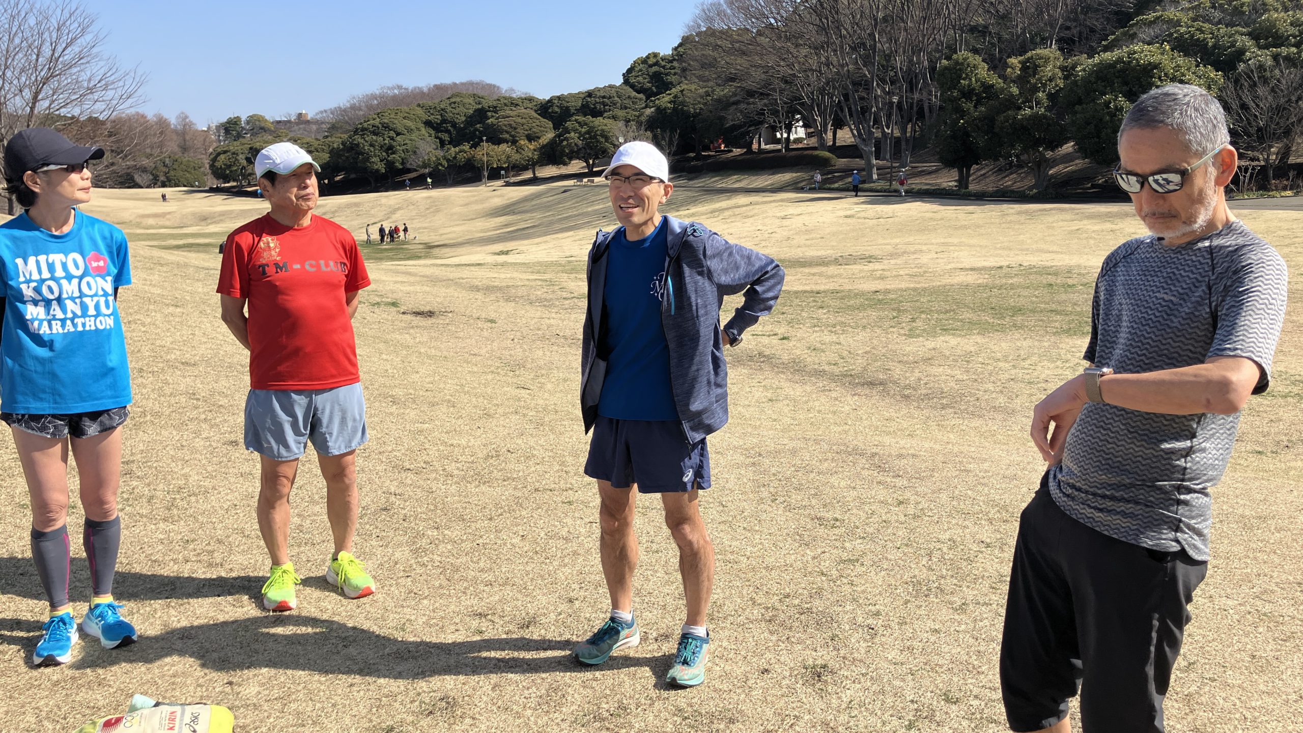 板橋前の調整がかっ飛ばしだという伊本さんは単独走、ペーサー麺さんが菊池さんを引っ張るスパルタチーム、平野さんが引っ張る根性チームという編成でそれぞれのチームが出し切った練習ができました。