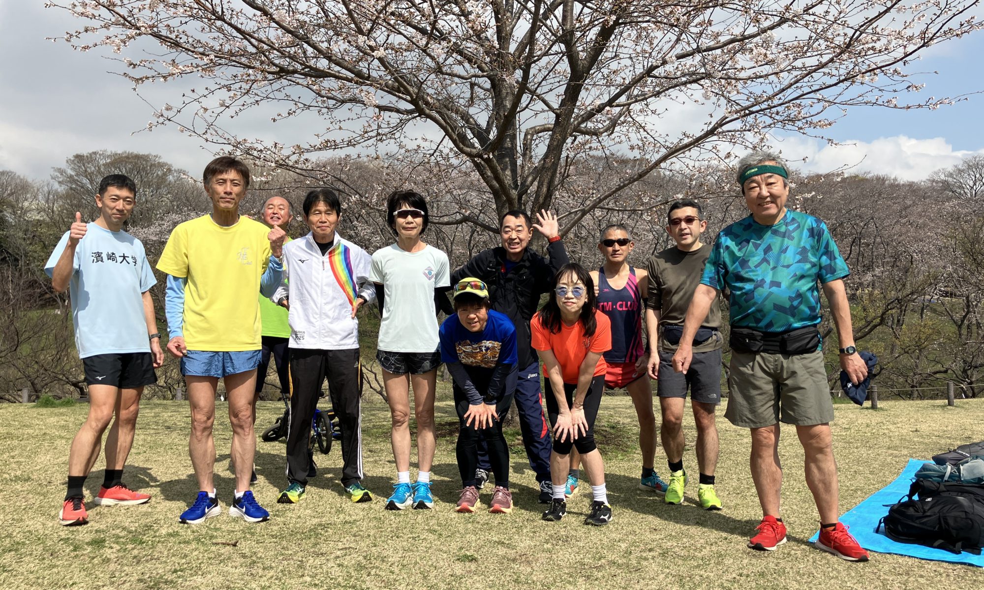 参加者は12人前後。今回の練習は園外走で、練習後に“花見の練習”を行うということで、ベースキャンプはOB・OGの皆様とご一緒させて頂きました。