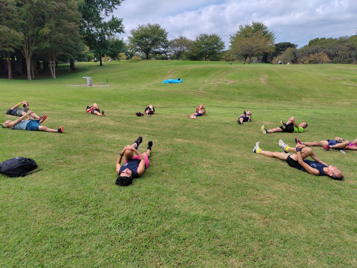 練習メニューは園内走およびビルドアップ走。ビルドアップ走では大体2グループと数人の個人ランで行われました。最後のペースアップでしっかり心拍数を上げられた方が多かったと思います。