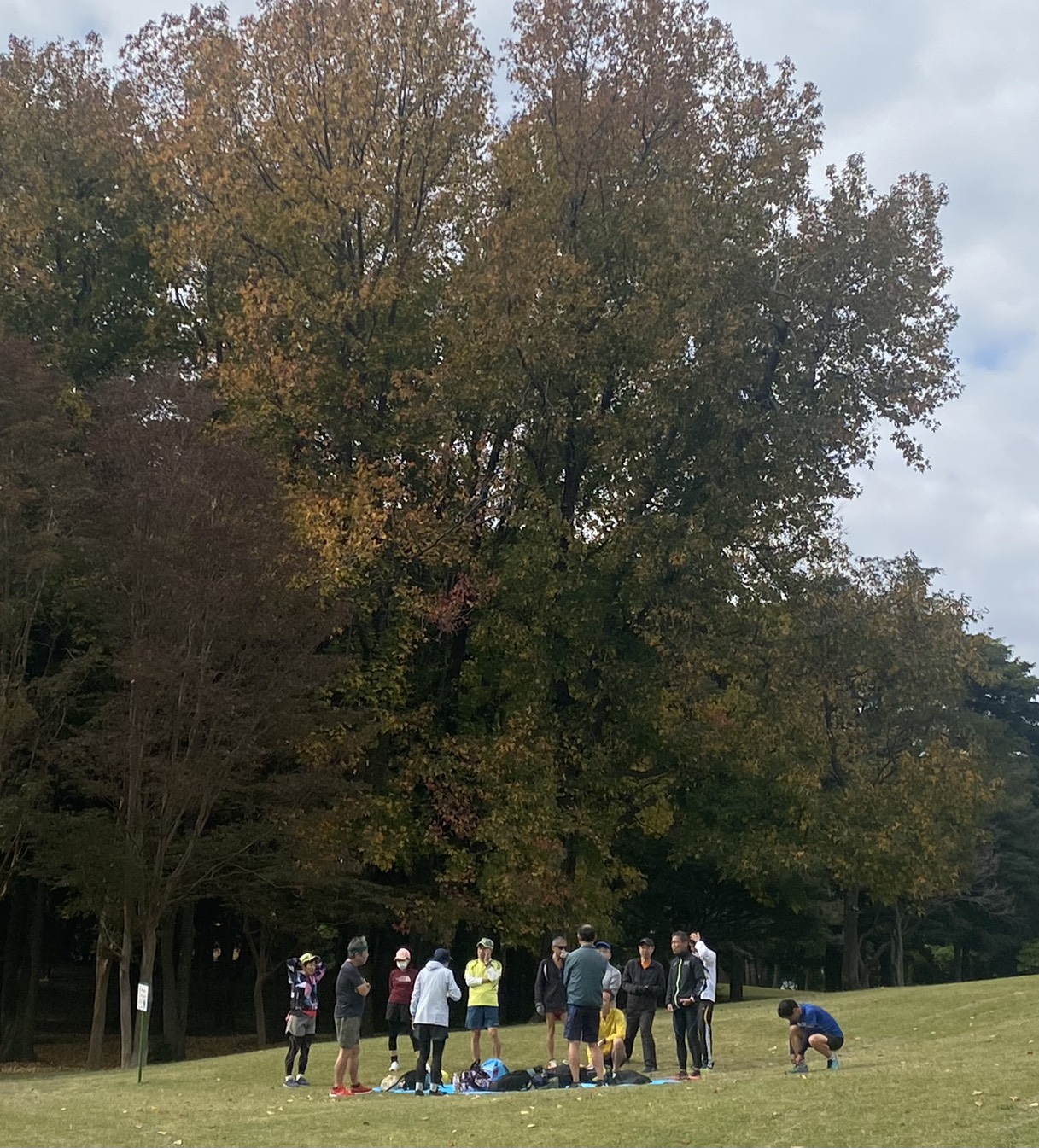 落葉がめちゃくちゃ綺麗な根岸森林公園に、21人が集まりました。やや肌寒い感じでしたが、とても走りやすい良い気候でした。