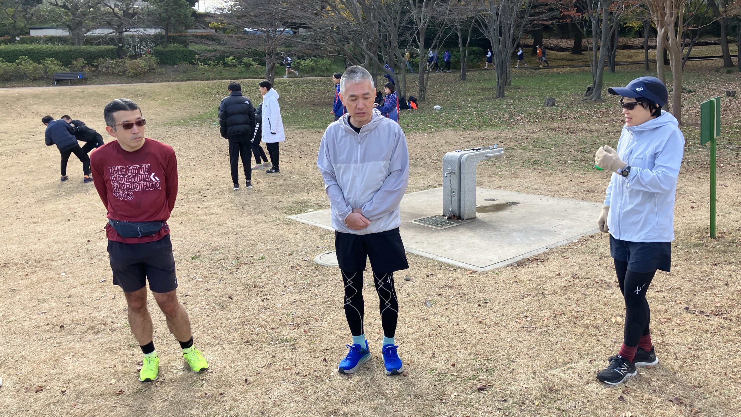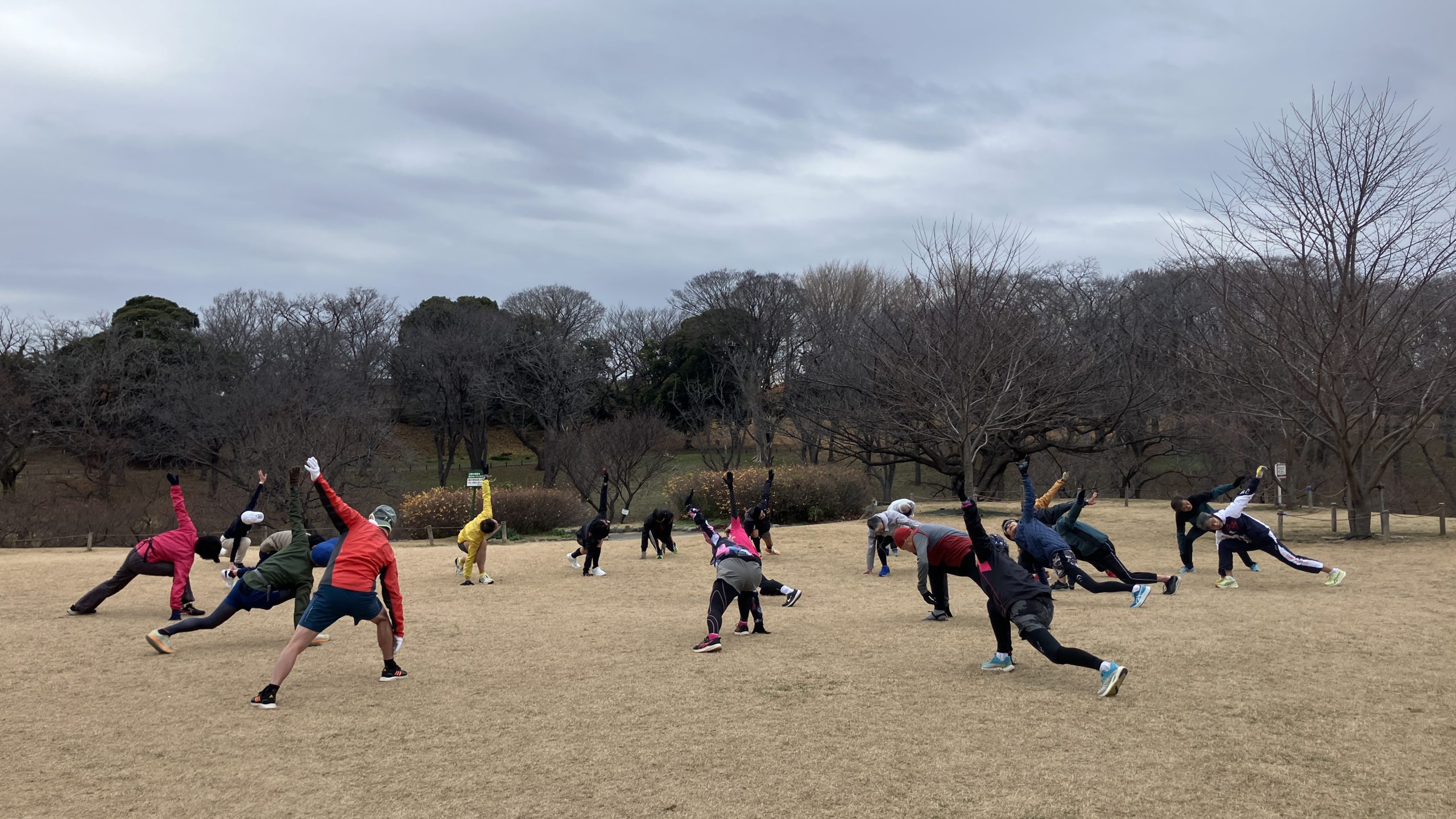 天気予報では最高気温1ケタと、今日はたぶん今季1番の寒さだったと思いますが走るにはよいコンディション。15人前後のメンバーが集合しました。