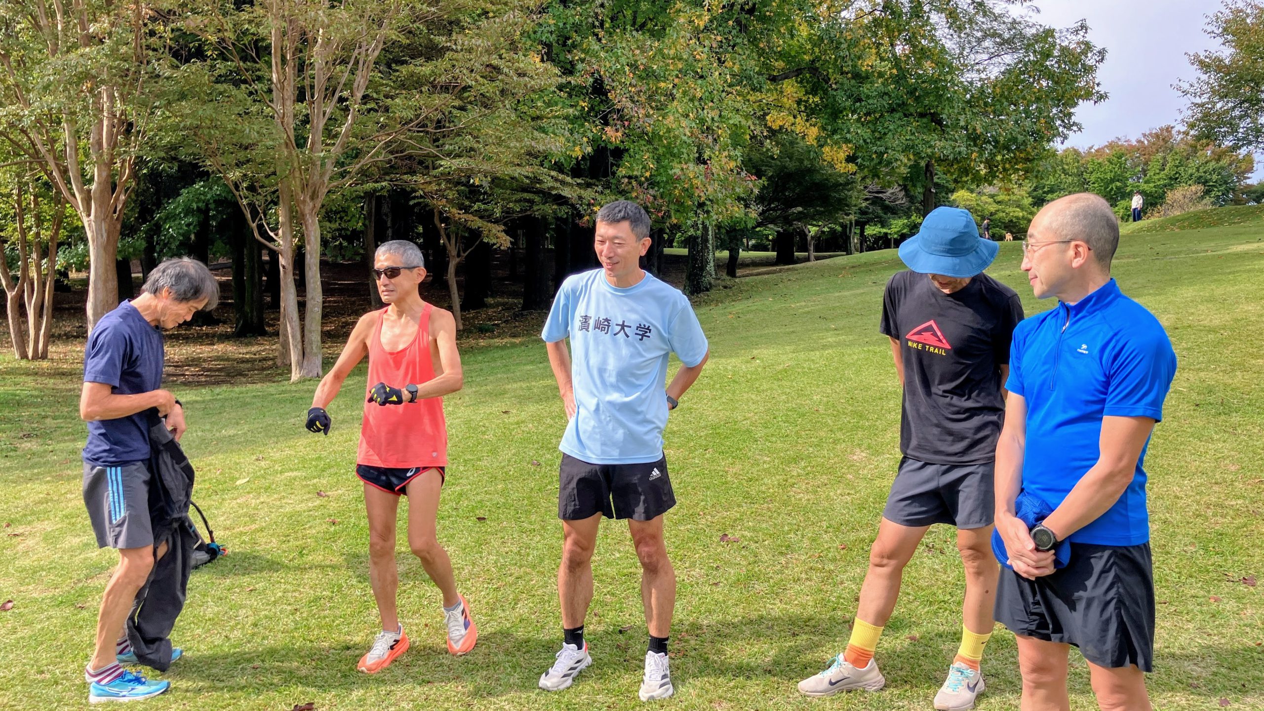 60分走は個人走ですが、自然に少人数のグループとなりました。白尾さんは平澤さんと一緒に軽快に楽しく5周半されたとのこと、つくばに出ていれば自己ベスト確実だったと思われます。例のガチ対決が先送りになり残念でしたね。。。